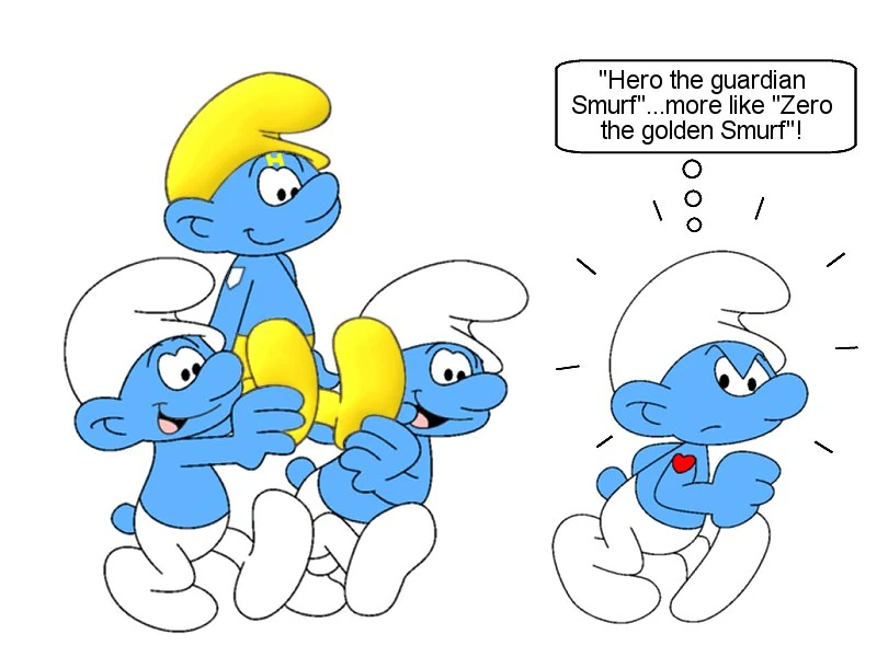 Prior to that, Hefty exhibited some jealousy toward Hero which caused him to challenge Hero to a one-on-one quarterstaff match with him, which Hero accepted much to the chagrin of Smurfette and Papa Smurf. As the duel ended in a deadlock where both participants were knocked out, Hefty and Hero started making amends with each other.