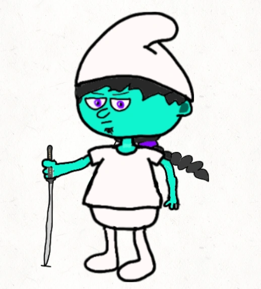 He has good dexterity, his appearance resembles a typical Asian, for which he was named as such. He uses his katana masterfully as a kitchen knife. Smurfasian is the longest haired boy in the village. His hairstyle is typical of East Asian traditional hairstyles which were in China and united Korea in XIX-XX century.