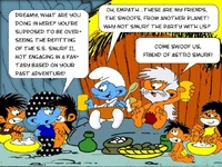 - The Swoofs' appearance in the Empath: The Luckiest Smurf stories combine elements from both the original comic book version of "The Astro Smurf" and the cartoon show version, most notably with Grandpa Swoof, who has orange skin but has white hair.
