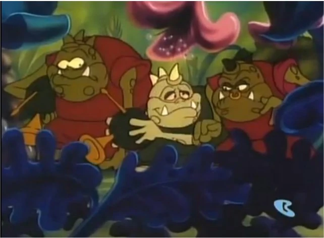 Wartmongers are amphibious creatures that live in the region called Pussywillow Hollow. They live in a kingdom society ruled by King Bullrush. They hunt after the Pussywillow Pixies using bubble guns that encase their prey in bubbles and bring them back to the palace where they are put to work as slaves. Their bodies are usually covered with warts; thus a Wartmonger that doesn't have any warts is considered "wartless" and is usually looked down upon by other Wartmongers. Most Wartmongers shown on screen are male, with the only female Wartmongers being shown in the episode The Scarlet Croaker.